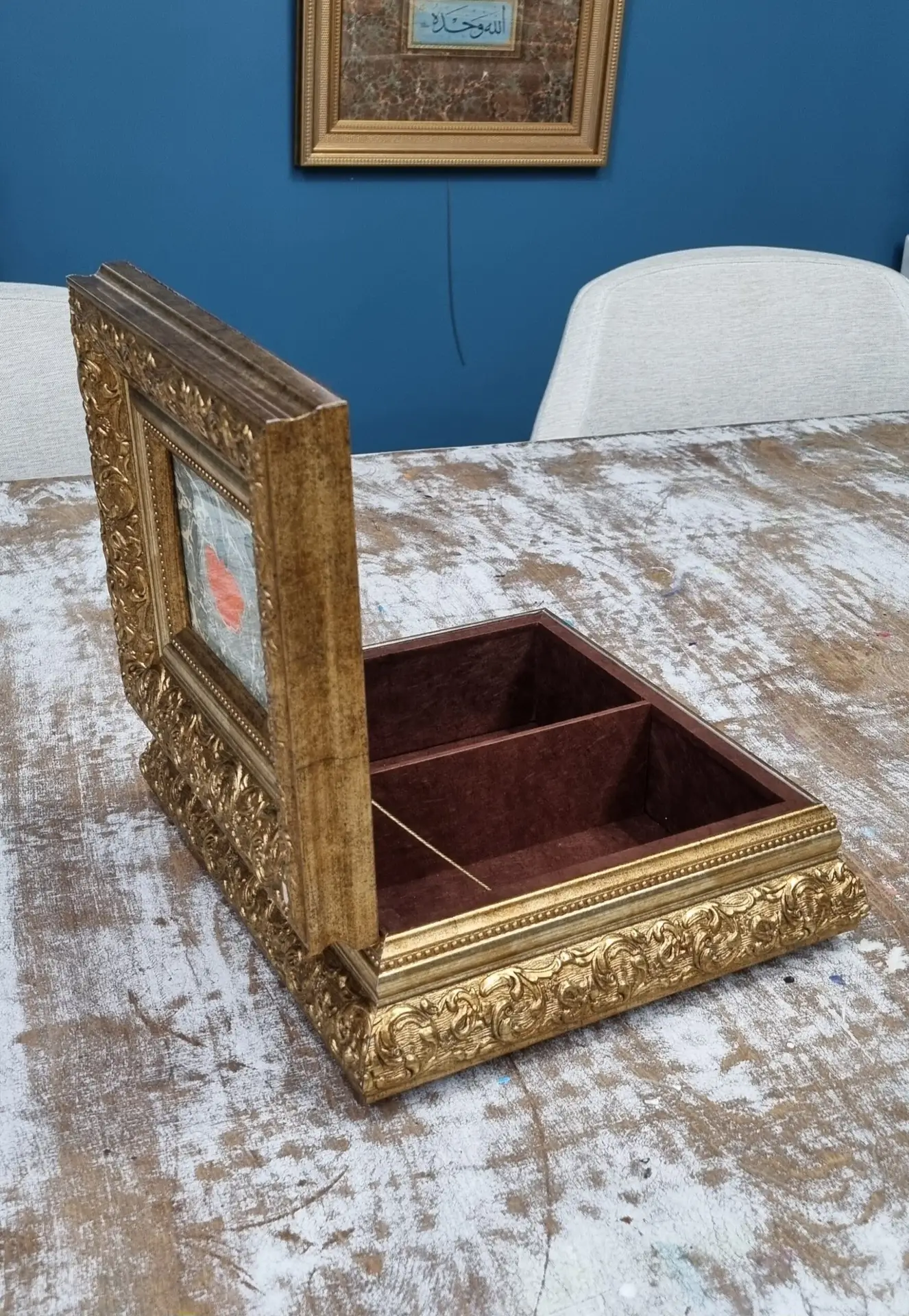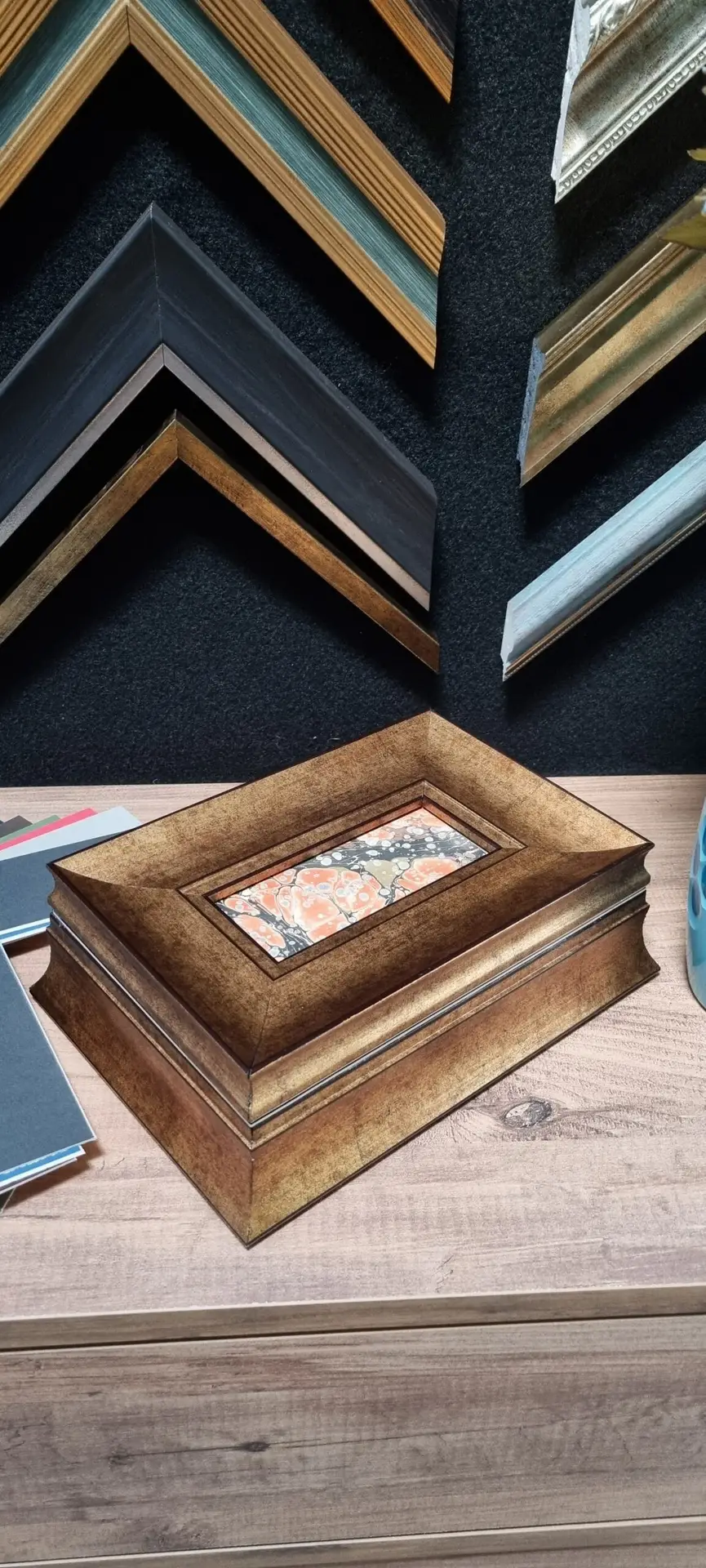 Dokusu Sanat Çerçeve ve Murakka Atölyesi olarak, sadece kaliteli çerçeveler değil, aynı zamanda özel murakka hizmetleri de sunuyoruz. Koleksiyonerlerin her türlü ihtiyacını karşılamak üzere, ebru ve tezhip süslemeleriyle bezenmiş şık murakkalar hazırlıyoruz. Yurt içi ve yurt dışındaki birçok koleksiyon eserine imza atmış olan Dokusu Sanat, sanat eserlerinizin değerini bilen uzman kadrosuyla hizmetinizdedir. Eserlerinize zarif bir dokunuş katmak için atölyemizi ziyaret etmeye bekliyoruz.